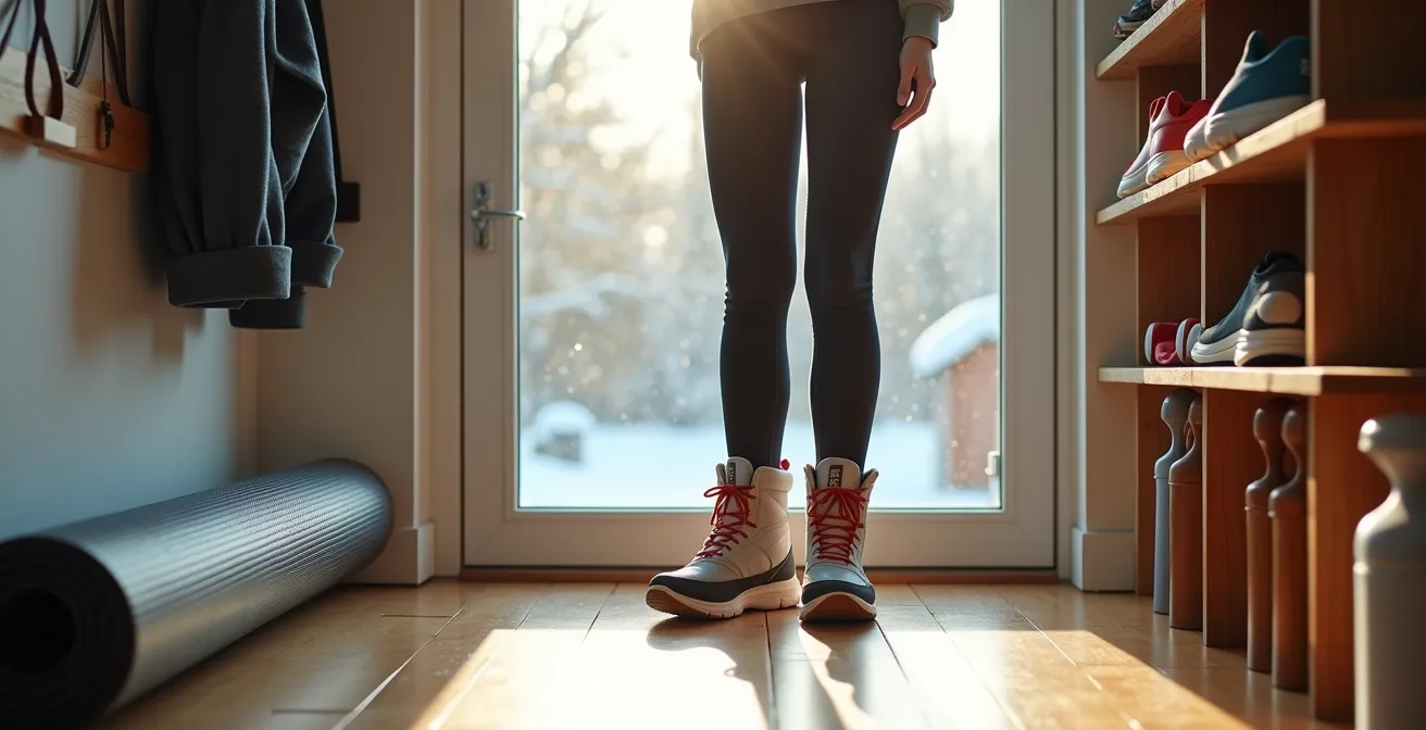 Cette approche pirate votre cerveau. Une action de deux minutes est si peu intimidante que l’excuse « je n’ai pas le temps » ou « je suis trop fatigué » ne tient plus. Une fois l’action initiée, l’inertie joue en votre faveur. Il est souvent plus facile de continuer que de s’arrêter. Pour maximiser vos chances, préparez votre environnement. Créez une « boîte d’urgence sportive » avec le nécessaire pour une mini-séance, comme une corde à sauter et des bandes élastiques. En hiver, placez votre manteau et vos bottes près de la porte. L’idée est de rendre le démarrage de l’action irrésistiblement simple.
